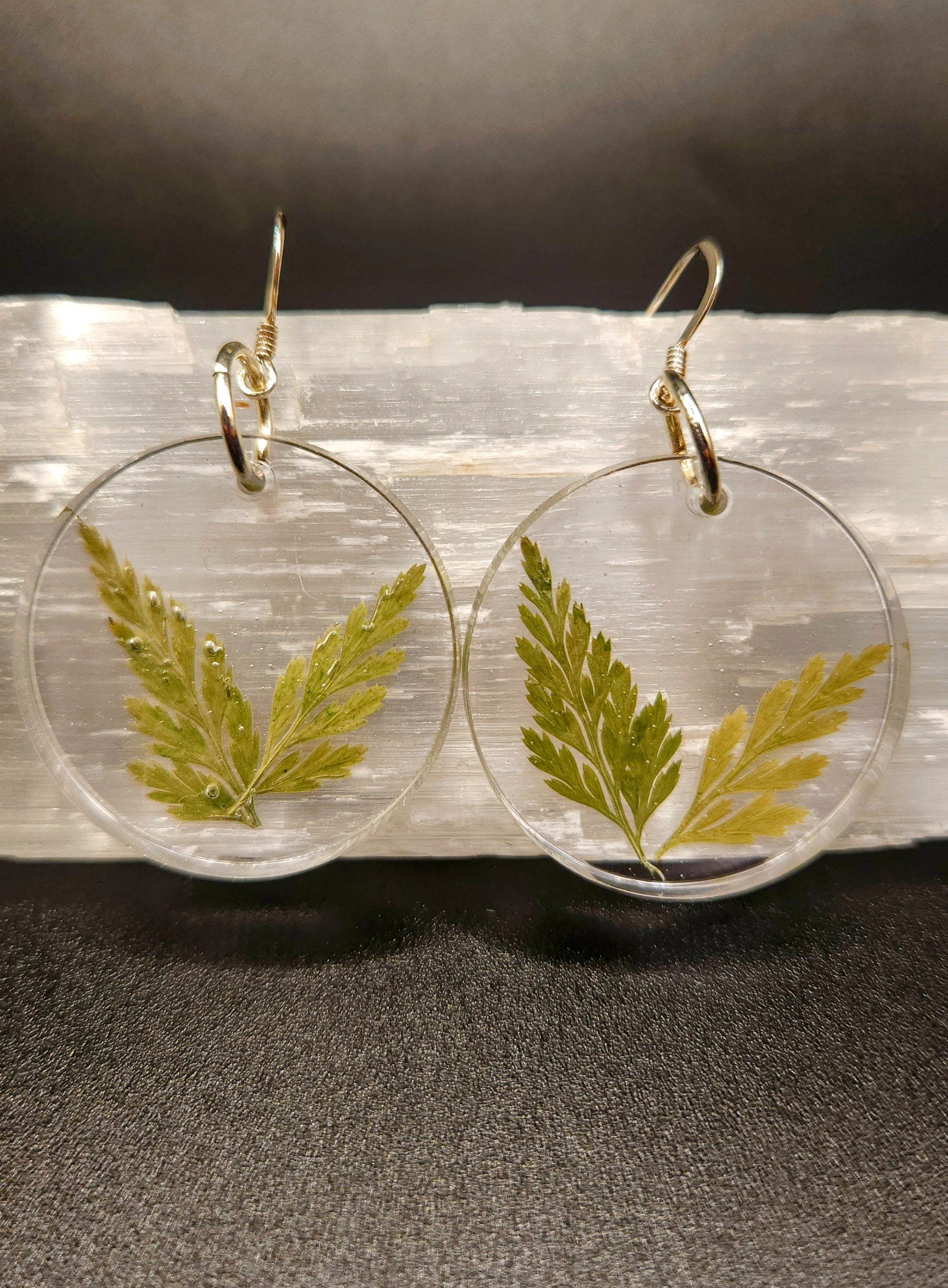 These lightweight earrings feature real fern leaves, preserved in high quality resin and finished with sterling silver hooks for comfortable wear.